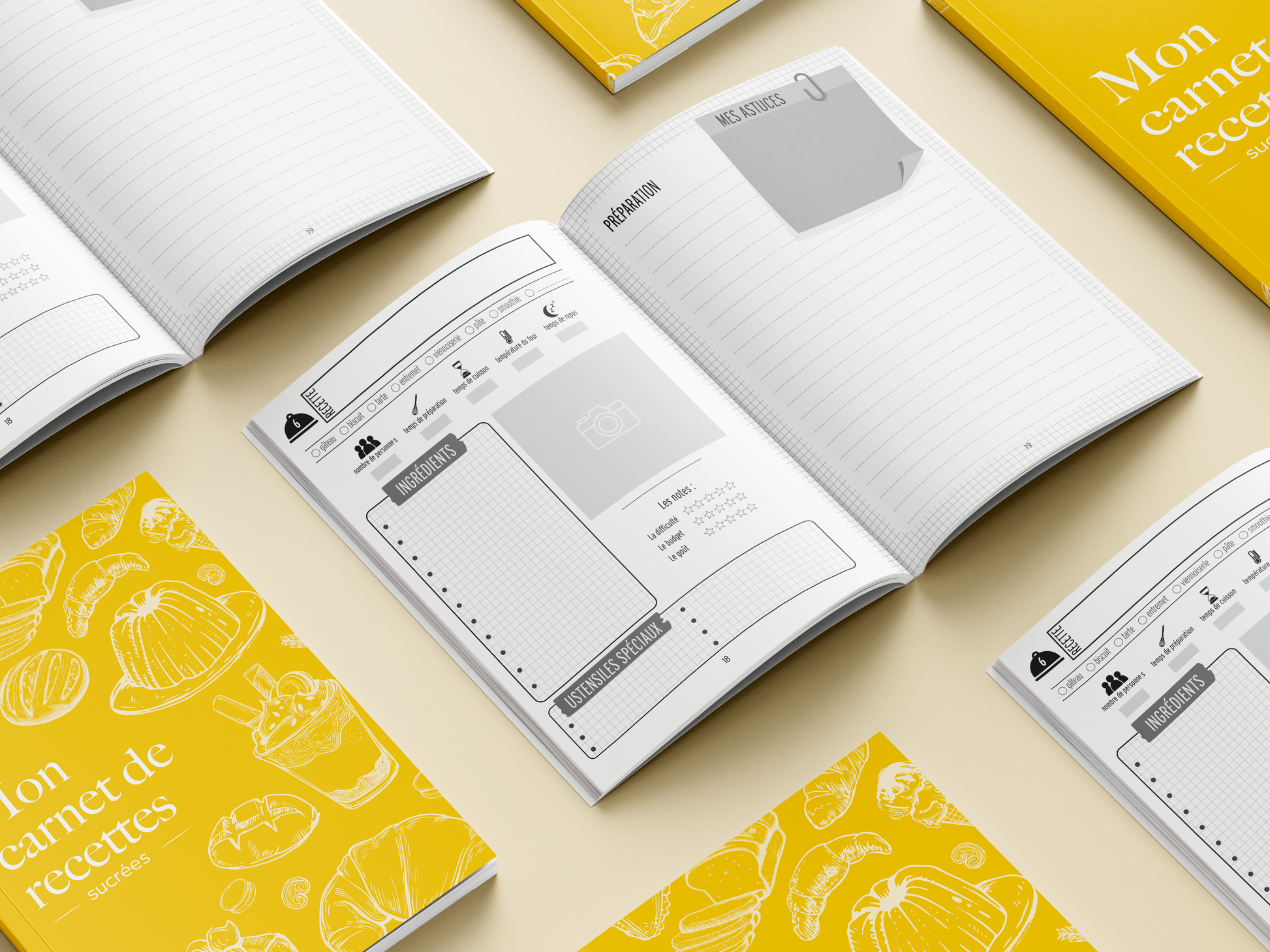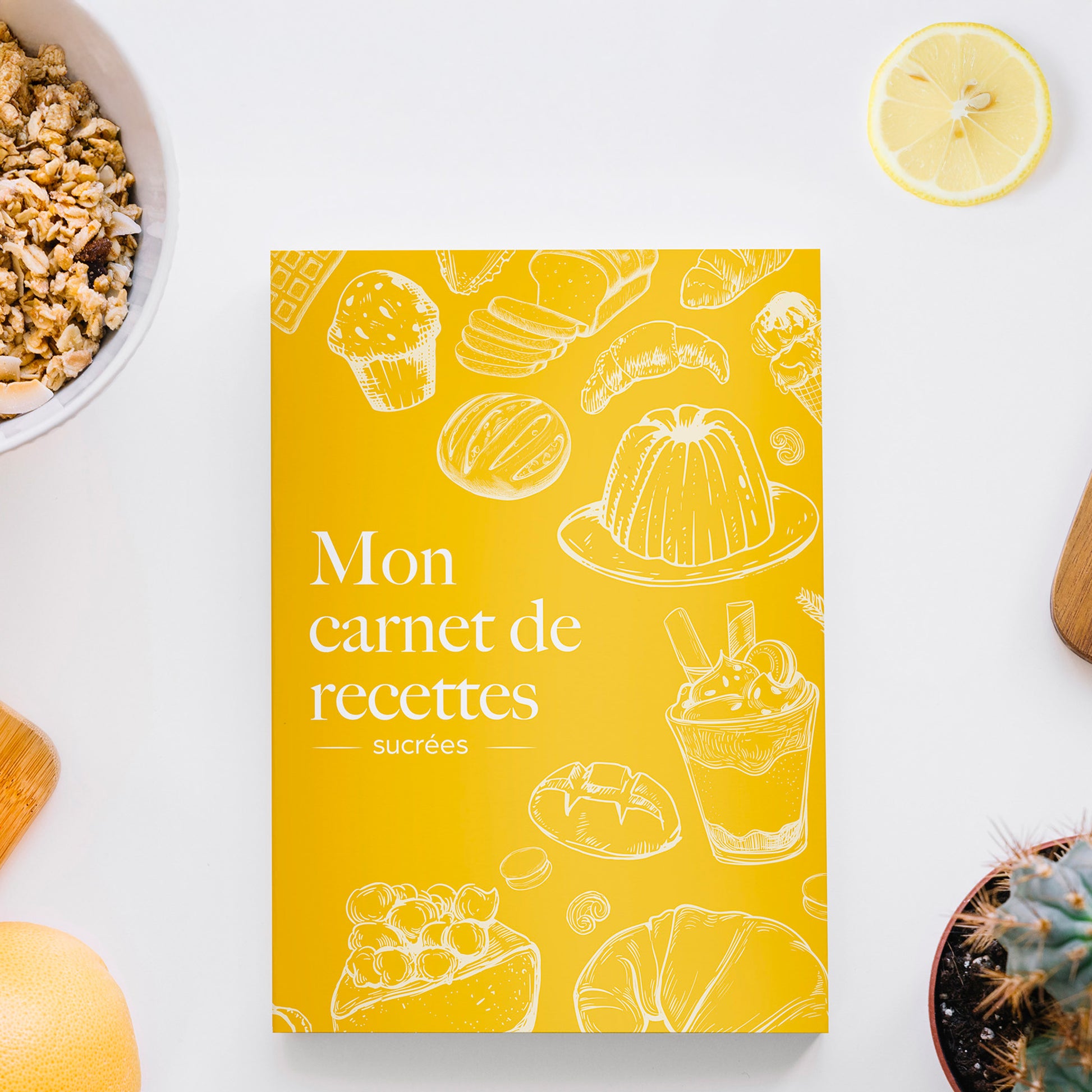 Un carnet dédié à toutes tes recettes sucrées : gâteaux, biscuits, desserts, brioches, tartes… Parfait pour centraliser tes créations, noter tes ajustements et garder une trace de toutes tes meilleures douceurs maison.