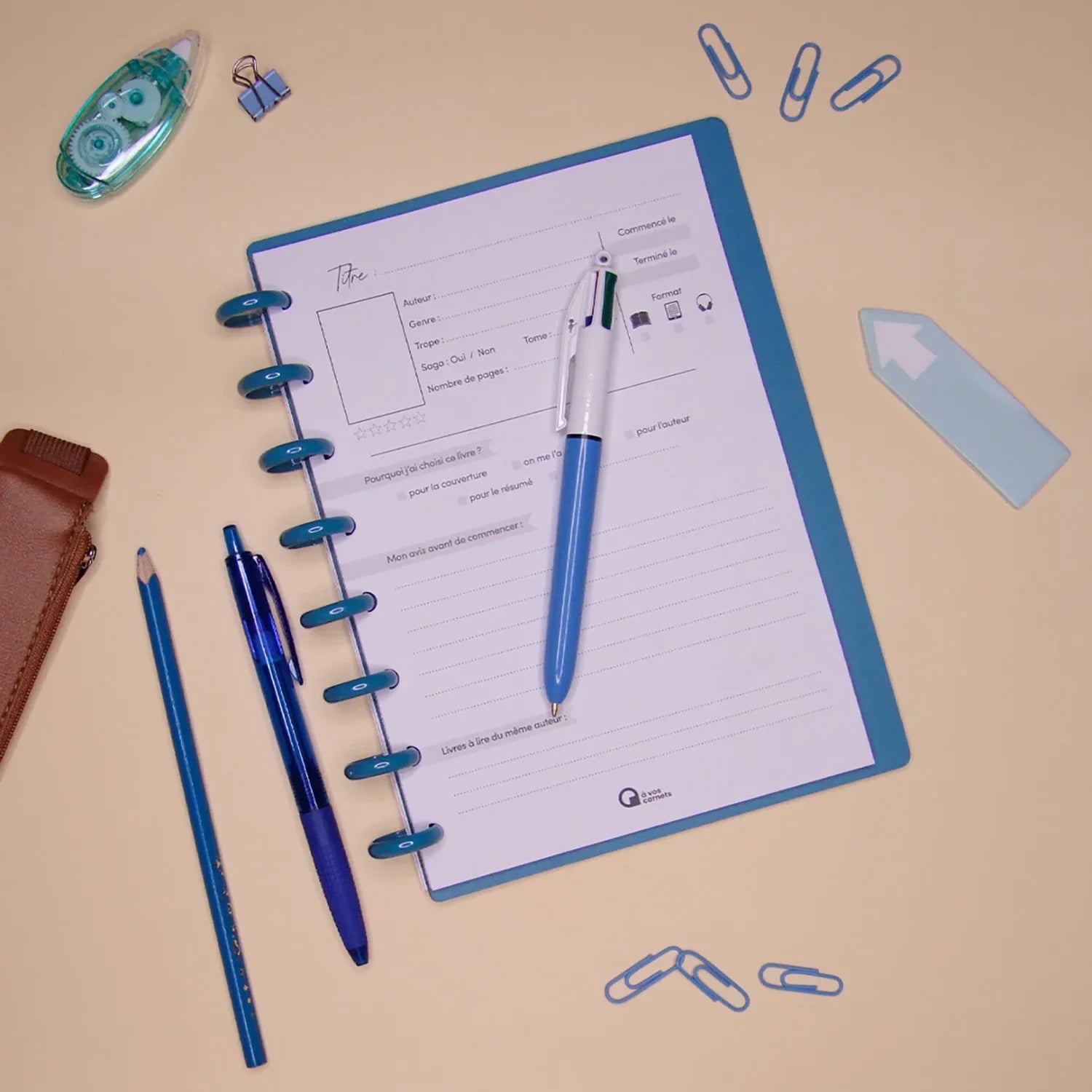 Cette couverture bleu A5 complète ton carnet pour le protéger et le personnaliser.